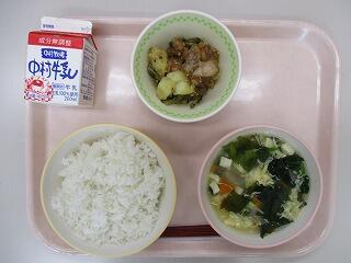 今日は、じゃがいものお話です。じゃがいもは、フランス語でポンムドメール(大地のりんご)といいます。これは、じゃがいもにビタミンCやカリウムがたくさんふくまれているので、野菜の少ない冬に、野菜や果物のかわりになる食品だったとことからついた名前です。今日は肉じゃがに、じゃがいもが入っています。よく味わっていただきましょう。