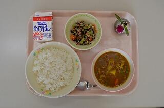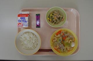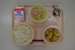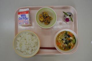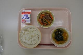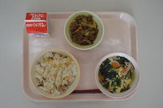 今日は、「ごぼう」の話です。ごぼうには、食物せんいが含まれています。食物せんいは、血液の流れをよくする働きやお腹の調子を整える働きがあります。また、今日のサラダは、歯ごたえがあるので、良くかむことが必要です。よくかむことは、歯やあごを丈夫にしてくれたり、頭の働きをよくしてくれたりします。しっかりとかんで、給食をおいしくいただきましょう。
