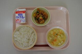 今日は、オイスターソースを使った炒め物です。オイスターソースは、生がきを塩漬けにして、発酵熟成させたもので、独特の風味とコクをもっています。かき油とも言われ、炒め物のほかに、和え物やたれなどの風味づけに使われています。豆腐は大豆からできていて、体のもとをつくる栄養がたくさん入っています。今日も栄養満点の給食をもりもり食べましょう。
