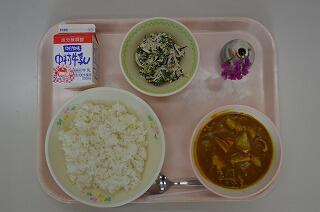 今日は、冬野菜のカレーです。カレーの中には、れんこんも入っています。れんこんは、奈良時代に中国から伝わったとされます。れんこんは、ビタミンCがとても豊富に含まれ、小さな節でもレモン1個分ほどのビタミンCがあり、かぜの予防も期待できます。
