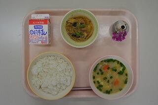 毎年1月24日~30日は全国学校給食週間です。学校給食は、多くの人たちがかかわることによってできています。お米や野菜、肉、魚など食べ物を育ててくださる方、それを運んでくださる方、給食をつくる調理員さん、給食費を払ってくれるお家の人、他にもいろいろな方がかかわっています。学校給食だけでなく、家や外での食事もそうです。「いただきます」のあいさつは、食べ物やいろんな人に感謝の気持ちを込めて言いましょう。さて、今日の給食は、始めて給食が実施された、明治時代の献立を再現しました。明日からは、宮崎県の郷土料理を紹介していきます。