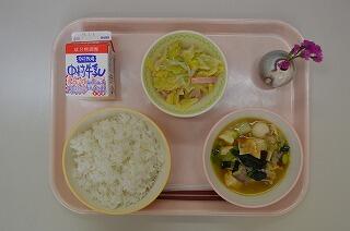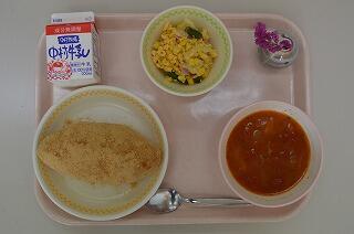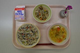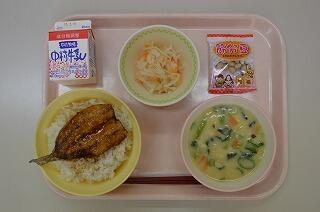 毎年1月24日~30日は全国学校給食週間です。学校給食は、多くの人たちがかかわることによってできています。お米や野菜、肉、魚など食べ物を育ててくださる方、それを運んでくださる方、給食をつくる調理員さん、給食費を払ってくれるお家の人、他にもいろいろな方がかかわっています。学校給食だけでなく、家や外での食事もそうです。「いただきます」のあいさつは、食べ物やいろんな人に感謝の気持ちを込めて言いましょう。さて、今日の給食は、始めて給食が実施された、明治時代の献立を再現しました。明日からは、宮崎県の郷土料理を紹介していきます。