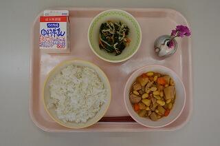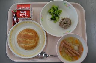今日は、ハンバーグの調理の中で、蒸しハンバーグにしました。ハンバーグは、手作りです。朝早くから調理員さんたちが、今日のハンバーグ作りのために、調理の段取りを考えて、作ってくださっています。食べれば、あっという間ですが、時間も手間もかかった、愛情たっぷりの料理です。よく味わって食べて下さい。