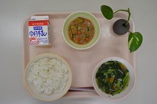 給食では形は見当たらないけど、よく使われている物があります。今日の給食にも入っています。味と匂いで何が使われているか分かりますか?答えはにんにくとしょうがです。しょうが焼きにはしょうが、スタミナ汁にはにんにくが入っています。にんにくやしょうがは菌をやっつける効果もあります。また、魚や肉の臭みを取るので下ごしらえにも使われます。また、消化や吸収を助けてくれたり、食欲がなくなった時に食欲がでるように助けてくれたりもします。すごいですね。にんにくとしょうがを食べて食欲モリモリになりましたか?