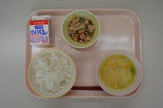 夏休みが終わり、2学期が始まりました。夏の疲れが出てくる頃です。夜は早めに寝るように心がけて、早起きをし、朝ごはんをしっかりと食べて、もとの生活リズムを取り戻しましょう。今日は焼肉丼です。食欲がなくても大好きな焼肉をごはんにかけたらペロッと食べてしまいそうですね。残さす食べて、夏の疲れを追い出しましょう。
