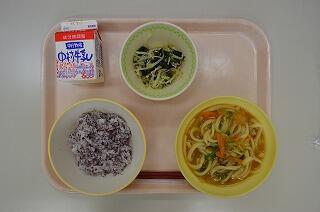 7月7日は、七夕です。七夕は、中国から伝わった行事の一つです。「7月7日の夜に天の川にかかる橋を渡って、織姫と彦星が1年に1度だけ会うことができる」という伝説にもとづいたお祭りです。七夕の行事食には「そうめん」があります。これにはいろいろな説がありますが、機織りの上手な織姫のつむぐ“糸”や“天の川”に見立てて食べられているようです。給食では、七夕汁のなかにそうめんを入れて星型のオクラを入れています。天の川が見られるといいですね。