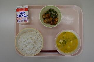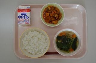 今日の酢豚に入っている豚肉のお話です。豚肉はどんな時に食べると体に効果的だと思いますか?次の3つのうちから考えてみましょう。①疲れた時 ②頭が痛い時 ③歯が痛い時 ・・・正解は、①ばんの疲れているときです。豚肉には、ごはんなどに含まれる糖質をエネルギーにかえる「ビタミンB1」が多く含まれていて、疲れた体を元気にしてくれる働きがあります。残さず食べて元気に過ごしましょう。