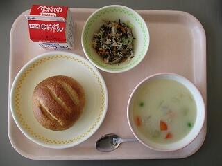 今日は秋の味シチューです。さつまいもやしめじなど秋の食べ物を使ったシチューです。みなさんは「さつまいも」という名前はどうやってついたか知っていますか?それは、もともとは中国から沖縄に伝わったさつまいもですが、沖縄から鹿児島に伝わり、そこから全国へと広がっていったことに関係します。昔は、鹿児島のことを「薩摩」と呼んでいたため、「薩摩の芋」として広がり、やがて「さつまいも」となったと言われています。さつまいもは甘くておいしいだけでなく、お腹のなかを掃除してくれる「食物繊維」がたくさん含まれた食べ物です。お腹が元気できれいだと気分もすっきりして勉強や運動も頑張れるようになります。残さず食べましょう。