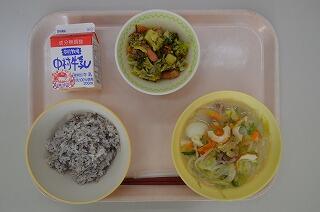今日はみそのお話です。みなさんはみそが何からできているか知っていますか?みそは大豆からできています。昔の人はお肉を食べることができませんでしたが、栄養豊富なみそを1日1回みそ汁にして飲んでいたことやみその材料の大豆を食べていたので大変な農作業をすることができたそうです。また、みそはガンを予防する食べ物としても注目されています。みそにはフラボノイドという成分がり、フラボノイドはガンの細胞を壊す力があります。そして血液の流れもよくしてくれますよ。今日は肉や野菜、厚揚げや里芋などたくさんの具をみそで煮込んだ、体があたたまる献立にしました。