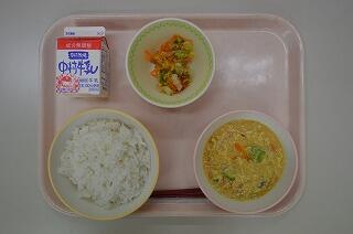 皆さんは『冬至』という言葉を知っていますか?冬至とは、1年で一番昼が短くなる日のことです。この日は、昔からゆず湯に入って、かぼちゃを食べる風習があります。これはかぼちゃを食べるとかぜをひかない、長生きするという言い伝えがあるからです。今年は12月22日が冬至となっています。ちょっと早いですが今日の給食はかぼちゃを使ったパンプキンシチューにしました。皆さん冬至の日にかぼちゃを食べて、病気をしない冬にしましょう。