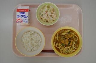 うどんには様々な食べ方があります。宮崎県の郷土料理のひとつである食べ方を知っていますか?『釜あげうどん』と言って、どんぶりの中のお湯にういているうどんをつゆにつける食べ方です。具は、ねぎと揚げ玉だけというシンプルなものです。他にもいろいろなうどんの食べ方がありますが、今日は皆さんが大好きなカレーうどんです。