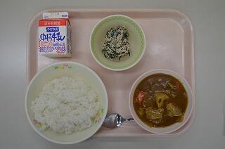 今日は、冬野菜のカレーです。カレーの中には、れんこんも入っています。れんこんは、奈良時代に中国から伝わったとされます。れんこんを切ったときに見られる糸状のぬめり成分「ムチン」は、胃腸の粘膜を保護し、糖尿病の予防にも役立ちます。また、ビタミンCがとても豊富に含まれ、小さな節でもレモン1個分ほどのビタミンCがあり、かぜの予防も期待できます。