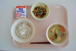 今日は冬を代表する野菜「白菜」についてのお話しです。白菜は昔から日本にある野菜のように思えますが、白菜のふるさとは中国です。中国では、2000年以上も前から作られていましたが、日本で作られるようになったのは、明治時代になってからだそうです。寒くなればなるほど甘みがましておいしくなります。今の季節は、鍋物に欠かせない野菜ですね。白菜に含まれる「カリウム」は、とり過ぎた塩を体から出してくれる働きがあります。今日は、スープにしています。残さずいただきましょう。
