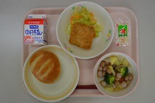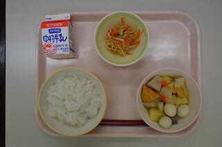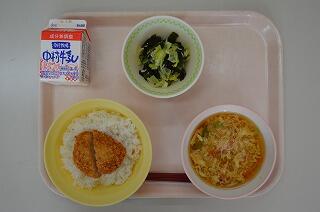 受験生のみなさんは入試を控え、毎日一生懸命勉強に励んでいます。今まさに受験シーズンです。今日の献立は受験の応援献立です。「試験に勝つ・自分に勝つ」と言う意味を込めた「かつ丼」です。ごはんの上にとんかつをのせて、その上から具をかけて食べましょう。しかし、試験の当日は揚げ物は胃に負担をかけるので避けた方がいいようです。受験生の皆さんは、手洗い・うがいを徹底して、食事はバランスよくとり、本番に向けてしっかり体調をととのえましょう。応援しています!