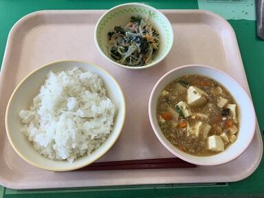 給食では、たびたび豆の料理が登場します。豆は、植物の種ですね。この種を土に植えて、水をかけると、植物が育ちます。つまり、豆には生きる力がたくさん詰まってます。植物には、人間の体ではつくることができない栄養素、ビタミンをつくることができます。人間が体の中でエネルギーをつくるためには、このビタミンが必要です。今日は、豆が姿をかえた、豆腐になって、マーボー豆腐として出しています。