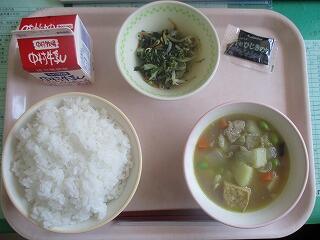今日の豚汁に入っている豚肉には、ビタミンB1という疲れにきく栄養素たくさん入っています。しっかり食べて元気に過ごしましょう。