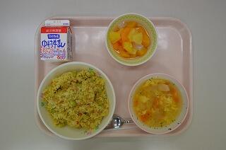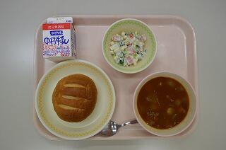 今日のサラダには、チーズがたくさん入っています。みなさんがいつも飲んでいる牛乳は、カルシウムがたくさん含まれていますが、この牛乳をなんとか長い期間保存できないかと考えられたのがチーズなのです。チーズはヨーロッパから来たようなイメージが強いのではないでしょうか?じつは砂漠地帯のアジアが発祥の地です。羊の胃袋を水筒がわりにして、牛乳をいれて持ち歩いていたところ、暑さによって牛乳がチーズになっていたのが始まりだったそうです。