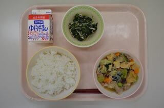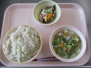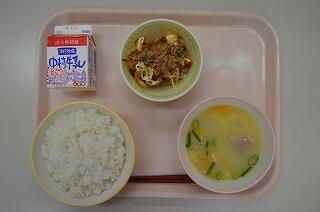 給食では形は見当たらないけど、よく使われている物があります。今日はスタミナ汁に入っています。味と匂いで何が使われているか分かりますか?答えはにんにくです。にんにくは菌をやっつける効果もあります。また、魚や肉の臭みを取るので下ごしらえにも使われます。また、消化や吸収を助けてくれたり、食欲がなくなった時に食欲がでるように助けてくれたりもします。スタミナ汁にはエネルギーのもとになるじゃがいもも入っていて、元気がわいてきそうですね。しっかり食べて、しっかりスタミナをつけて暑い夏を乗り切りましょう。