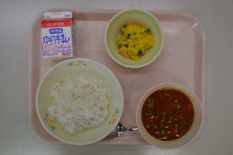 今日は、ハロウィンです。ハロウィンとはもともと秋の収穫を祝い、悪い霊を追い出す行事でした。今では特にアメリカでは、かぼちゃの中身をくり抜いてこわいおばけの顔にして飾ったり、子ども達がお化けや魔女に変装してお菓子をもらったりするお祭りになっています。今日はハロウィンにちなんでかぼちゃを使ったパンプキンサラダにしました。かぼちゃにはビタミンがたくさん含まれていて、カゼに負けない強い体を作ってくれます。これからますます寒くなります。かぼちゃを食べて強い体をつくり、冬を乗り切りましょう。