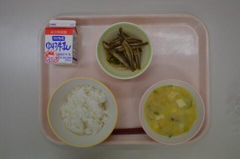 今日は、長崎県や鹿児島県でとれた新鮮なキビナゴを油で揚げて甘辛いタレでからめました。「きびなご」というのは魚の名前です。大きくても10cmほどの小さな魚で、頭からしっぽまで美しい銀色と青の帯をもつのが特徴です。鹿児島県の代表的な郷土の食材で、鹿児島県では、着物などの帯のことを「きび」と呼ぶことからこの名前がついたと言われています。スーパーや魚屋さんに行ったらどんな魚かのぞいて見てくださいね。きれいでかわいい魚ですよ。今日はカリッと揚げて、タレをからめました。お味はいかがですか?