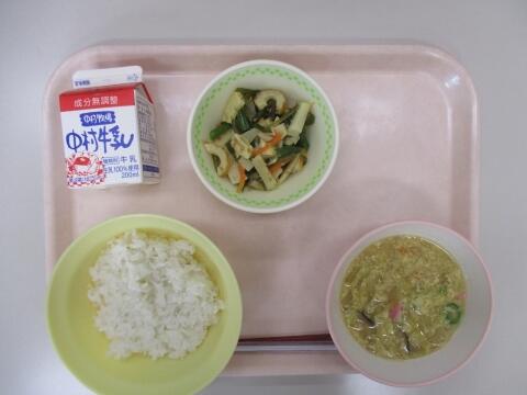 今年度最後の給食です。4月からの一年間、苦手なものにチャレンジして食べる事ができましたか?給食では、たくさんの食べ物との出会いがあります。味付けを工夫したり、調理方法が変わるだけでも、食べる事ができるようにもなります。何より、みんなで食べると楽しくおいしく感じるものです。食べる事は、みなさんの体と心を作ってくれます。新しい学年でも、苦手なものにもチャレンジして、みなさんが元気な体と心でたくさん活躍できるように願っています。