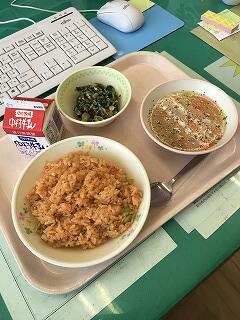 ・チキンライス ・ミネストローネ ・ツナサラダ ・牛乳 でした。
