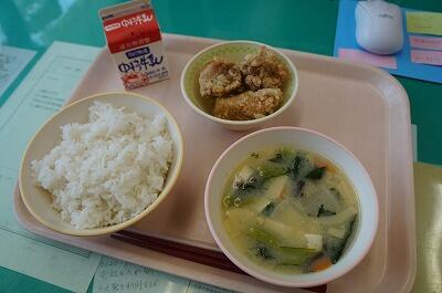 唐揚げ定食という感じで、安定感がありますね~(^0^)子どもたちに人気のある給食に間違いありませんね。そして、筍とわらびのみそ汁がこの時期いいですね~。旬のものをいただいた感があり、大変大満足しております。子どもたちも、その時期、その時期の旬のものをいただけることに感謝しなければなりませんね。今日もきっと、食缶の中は、空っぽ(残菜ゼロ)になりますね(*^▽^*)