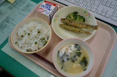 ・えんどうごはん ・ジャガイモのみそ汁 ・ししゃもフライ