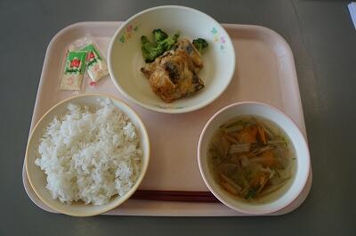 かつおの角煮は、やさしい味で、ご飯にぴったりでした。きゅうりと大根の即席漬けもおいしく、ご飯に合っていました(^0^)すいとんも食べやすく仕上がっていました。1。2年生は、今日は、若干肌寒い中、田んぼでどろりんピックをしましたので、すいとん汁の温かさがうれしく、更においしく感じることでしょう。