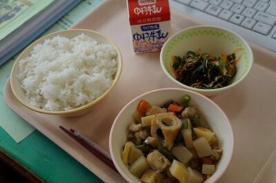 坂小の煮物は、ピカイチです。本校職員も「今まで食べた筑前煮の中でナンバー1」と言っています。味付けがいいですね~(^▽^)一つ一つの素材にその味が染み渡っています。鶏肉、レンコン、タケノコ、にんじんなどなど、入っている具材の全てがおいしく仕上がっています。