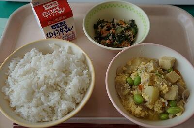 高野豆腐の卵とじは、ご飯に良く合うおいしさでした(^▽^)ご飯にかけて、高野豆腐の卵とじ丼にしてもいいかもです。わかめとツナの和え物もご飯のお供になりました。主菜、副菜ともに良い味でした。いつもおいしい給食をありがとうございます<(_ _)>