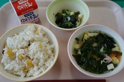 秋味ご飯は、秋の味覚である栗が豊富に入っていました(*^▽^*)しめじも入り、秋味を演出していました。かきたま汁は、アツアツで本当においしかったです。里芋の酢味噌和えは、里芋よりもイカの方がインパクトが強かったように思いますが、どちらにしても旨さに変わりはありませんでした。季節を感じることのできる給食っていいですよね~。ありがたいです<(_ _)>