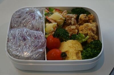 彩りよい給食ですよね~(^▽^)私はこのように配膳された状態で食べましたが、子どもたちは、弁当の日ということで、各家庭から空の弁当箱を持参し、おにぎりをにぎって、おかずと一緒に弁当箱に詰める作業を行いました。人それぞれのセンスあり(^▽^)年齢の違いあり(*^▽^*)何とも楽しい時間でした。それでは、どのように詰めたのか?一例だけ紹介します<(_ _)>