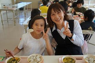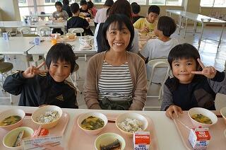 本日、給食室の調査があり、3名のお客様がおみえになりました。そのうちの2名の方がわくわくランチに参加してくださいました。栄養教諭の大原先生と町教委の秋本さんです。秋本さんは、2回目になります。お二人とも子どもたちの様子を見て、「素直でかわいい子たちばかりですね~。」と誉めてくださいました<(_ _)>