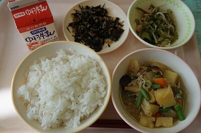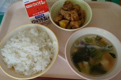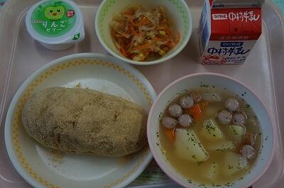 先ずは、何と言ってもふっくらとして温かさの残る米粉パンのうまさですね~(*^▽^*)パンは、給食で出る機会が少ないので、出たときはそのうまさに感激しますね~