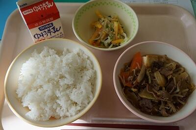 すき焼き煮は少し濃いめの味付けがごはんのおかずにピッタリ(*^▽^*)そして、柿なますがさわやかでまた格別(*^▽^*)今日もおいしく給食をいただきました<(_ _)>