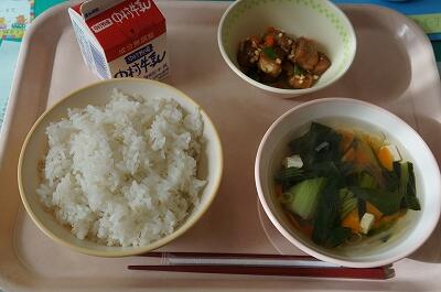 鶏肉と椎茸の南蛮は、初メニューでしたが、とてもおいしくて、一気にファンになってしまいました(*^▽^*)それには、揚げた里芋も入っていたのですが、これが絶品でした。まいう~。小松菜のみそ汁も間違いない味で、今日の給食は、定食みたいで大満足でした。