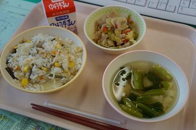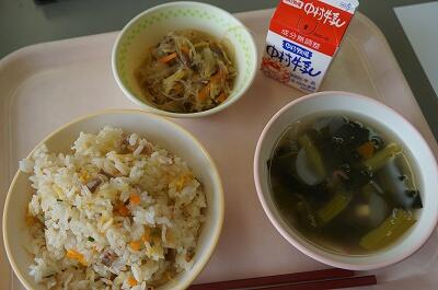 わかめスープも優しくいい味です。今日は、今日は給食遠足でした。外でいっぱい活動した後に食べた給食は、最高だったはずです(*^▽^*)