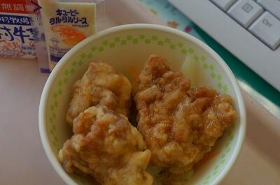 子どもたちが大好きなチキン南蛮です。タルタルソースをかけて食べます。とってもおいしいですね~。宮崎のソールフードです(*^▽^*)