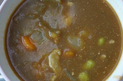 野菜スープがおいしかったですね~。この味大好きです。どの味か分かりにくいでしょうけど、いい味なんですよ~<(_ _)>中に入っているキャベツが美味かったですね。