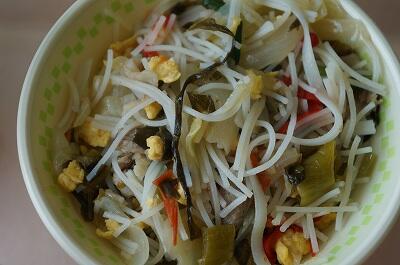 高菜ビーフンは、高菜の食感が最高!噛んだときに出るシャキシャキ音が心地よいです。味付けは子ども向き!大人はもう少しピリッと感があるとよりいいかもですね~。でも美味かったです。