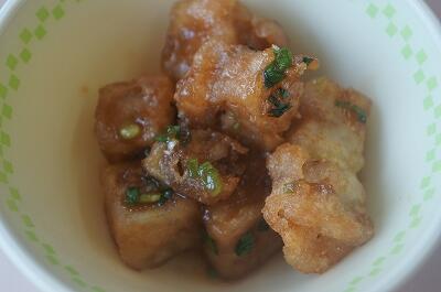 ということで、今日は、先ずこっちから。揚げ魚のネギソース和えです。外側パリパリで、中は白身魚の柔らかい感じで食感がとても良く、おいしかったです(*^▽^*)