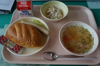 子どもたちから人気ナンバー1のいつものパンがウインナーと茹でキャベツが加わって、ホットドッグになりました(*^▽^*)ケチャップもついていて、言うことなしです。とてもおいしかったです。