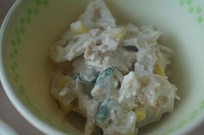 そしてれんこんサラダ。ツナとの相性バッチリ(*^▽^*)とてもいい味です。これをパンにはさんでも美味いと思います。