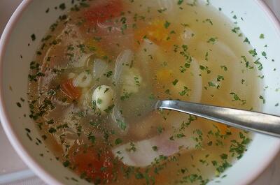 野菜スープは、中に入っている野菜がいい感じでとろけて、めちゃくちゃおいしかったです。あと一杯欲しかったなあ~。