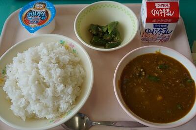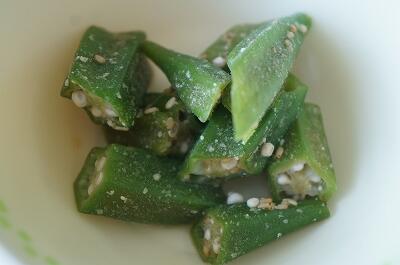 そして、オクラのごま和え。カレーの箸休めになりました。辛いカレーのあとに食べるとホッとする味です。