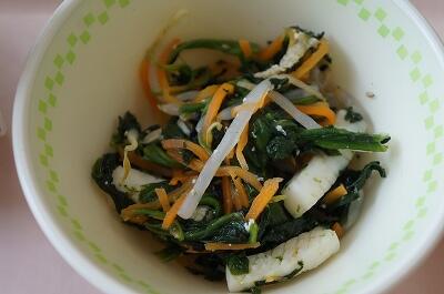次に千草和え。これも暑い季節にはピッタリのメニューですよ。程良い酸味が食欲増し増しにさせてくれます。中に入っているイカの食感もいいですね。