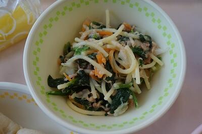 続いてスパゲティサラダ。麺の茹で加減が抜群。ツナやほうれん草との相性バッチリ(^_^)vめちゃくちゃ美味かったです。