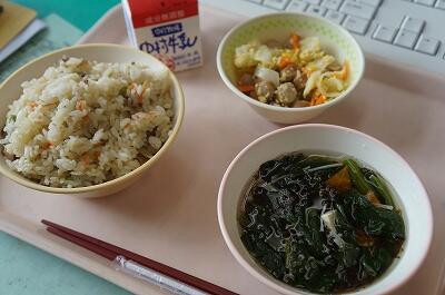 わかめごはん!とってもおいしかったです。ごはんとわかめは相性バッチリですよね~。