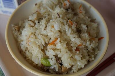 牛肉きんぴらごはんは、炊き込みご飯風で、とてもおいしかったです。いい味でした。枝豆もいいアクセントになっていました。